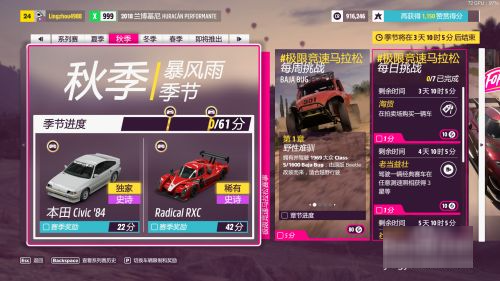 4、完成地平线锦标赛和公开赛挑战。