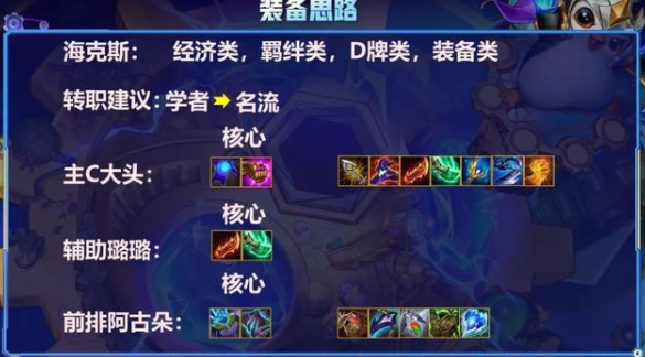 海克斯推荐:首先是经济类,因为我们是赌狗,其次D牌类,然后是人口类,然后羁绊类,最后buff类。