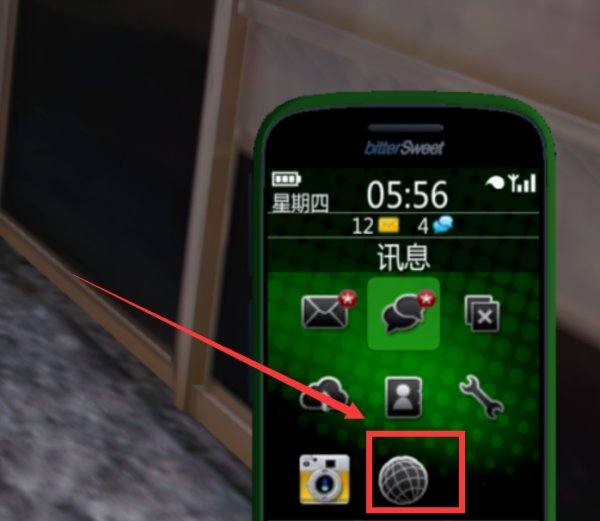 1、进入游戏之后,首先就是将手机打开,之后点击中间最下面的互联网,点击上网。