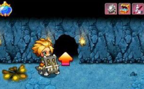3、然后在这个洞穴中会看见一个门,朝着红色箭头所指的方向走,如下图所示: