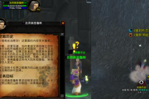 5、来到正门会接到《挖掘历史》的任务,任务物品就在卡拉赞左边山脚下坐标(45,79)的位置。做这一步任务的时候记得退出团队,否则无法拾取任务物品。