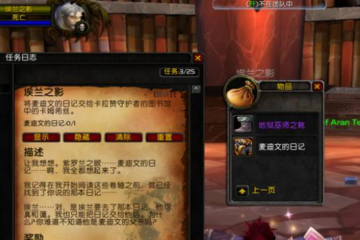 2、《麦迪文的日记》需要玩家前往卡拉赞内部找到名为“拉维恩”的NPC,这个NPC位于馆长前往埃兰的路上。