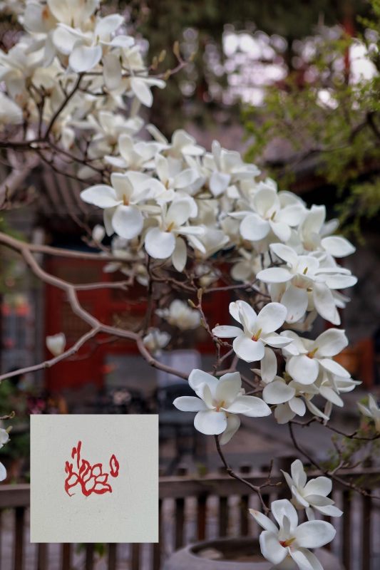 最美的小章大概是大觉寺的玉兰章了,这是众寺庙中唯一不采用建筑而是树木的,大觉寺玉兰种于明代,花开如盘是其特点。