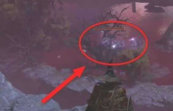 2、打开地图前往沼泽分岔路尽头处,如下图所示: