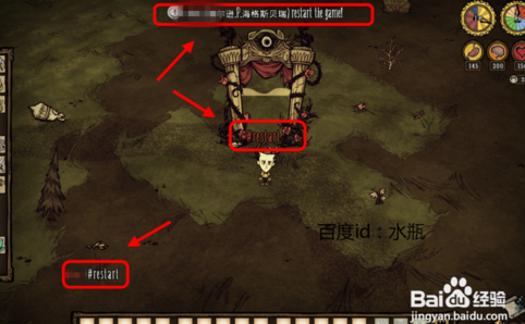 2如果想获取东西,在框中输入:DebugSpawn"XX"——放一个XX在鼠标指针指示的地上 c_give(“XX”,数量)——直接放包里c_spawn(“XX”,数量)——放鼠标指针指示的地上XX填饥荒中的生物/物品等的英文名称(下面有会有详细的物品表单,替换即可) 例如:c_give(“meat”,2),回车键后,包里就多出来2块大肉了。