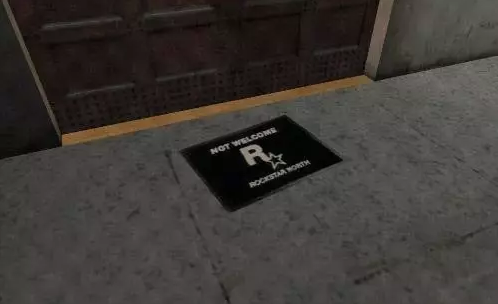 在游戏的最后的一个任务里当你要进入Big Smoke的屋子摊派前,看看地上的毯子。画着Rockstar North的标志,还写着'Not Welcome'“不受欢迎”