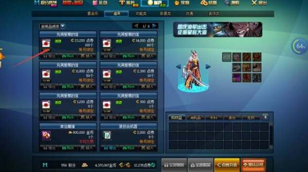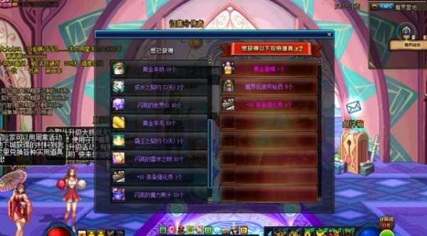 一般的东西:复活币,黄金装扮器,普通装扮器,装备调整盒,部分粉装,疲劳药水,深渊邀请函,祝福券(只能强化传说以下装备),普通装扮兑换券
