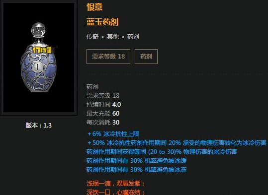 %20 药剂通用性较高%20主要作用是可通过把受到的物理伤害转化为冰冷伤害,借由高额冰冷抗性达成物理伤害减免效果同时增加%的冰冷伤害达到%20攻守兼备