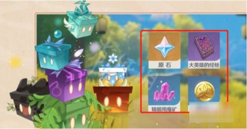 3、累计上交材料次数达到五次,可开启奇货大礼盒,额外获得原石、大英雄的经验、精锻用魔矿、摩拉等奖励。