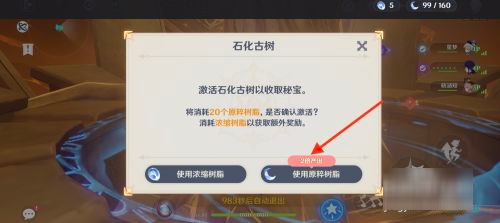 4、选择“使用原粹树脂”(2倍产出)即可,每天每个人有三次机会。