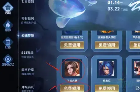 3.进入【云梦境】页面,找到不知火舞的图片,点击下方【免费使用】。