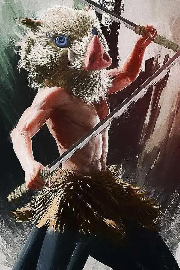 最令人吃惊的是真正画风下的嘴平伊之助,他身体的肌肉非常发达,给人一种非常坚强的感觉。